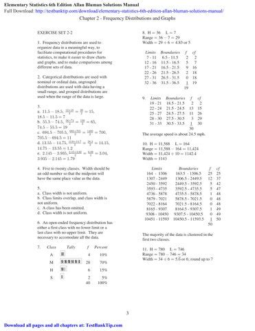 Online PDF Answers For Elementary Statistics 6th Edition Bluman Kindle Editon